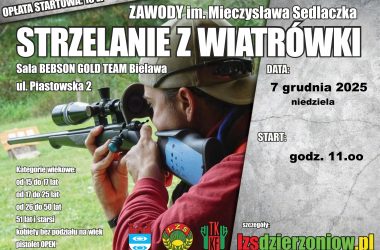 REGULAMIN INDYWIDUALNYCH ZAWODÓW STRZELECKICH Z WIATRÓWKI im. Mieczysława Sedlaczka Termin i miejsce: 07.12.2025 r. /niedziela/ w sali przy ul. Piastowskiej 2 w Bielawie Początek o godz. 11.oo Uczestnictwo: Indywidualnie z [ … ]